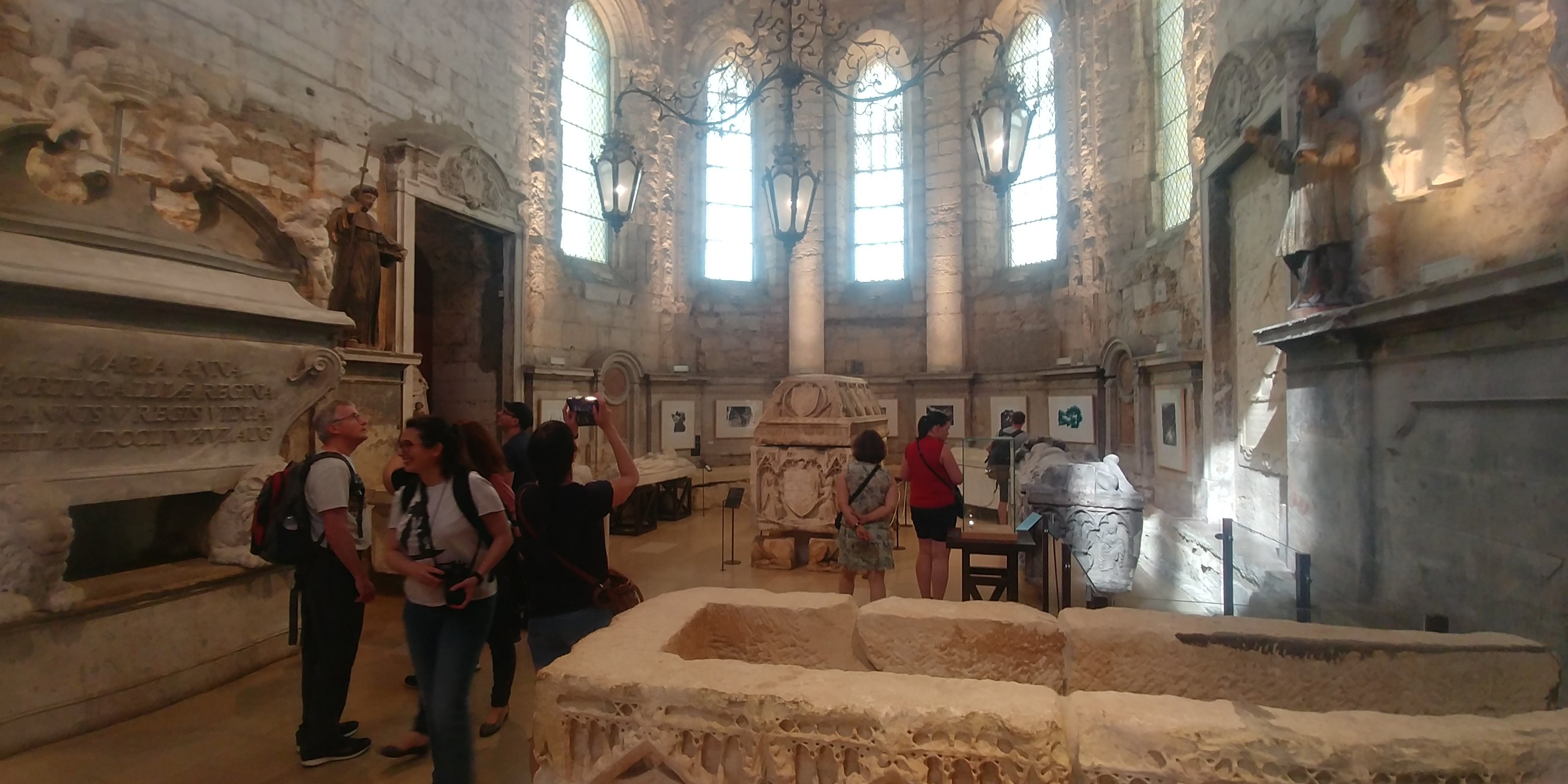 Une traversée rapide va nous conduire près de la place du commerce aussi appelée Terreiro do Paço par les Lisboètes.Depuis cette place, nous visitons un musée retraçant l’histoire de la ville, et nous grimpons au sommet de l’Arco da rua Augusta.Le midi, repas rapide au Mercado da Rebeira, grande halle où l’on retrouve de nombreux stands de restauration.L’après midi, nous continuons notre promenade qui va nous mener au fil des rues, des places et des églises jusqu’au sommet du chateau de Sao Jorge.Nous terminons nos visites du jour par le musée de Carmo, situé dans une église partiellement détruite par le tremblement de terre de 1755 et laissée en l’état. Le musée contient des vestiges archéologiques de tous les peuples ayant vécus ici, mais également un sarcophage égyptien et des momies incas du Pérou.Demain, direction nord ouest pour la ville de Sintra.